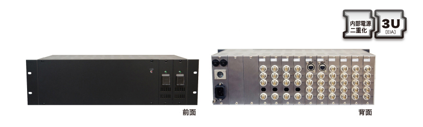 各種ユニットを10台実装、電源ユニットを2台実装して電源の2重化を可能としたEIA規格3Uのパネルです。